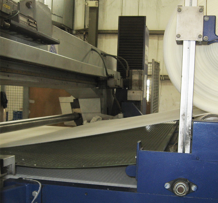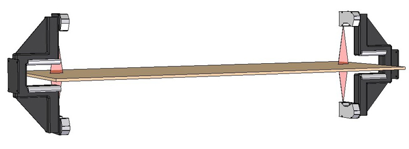 The system generates a continuous thickness measurement at each edge of the foam sheet with readings updated at least 50 times/second. Thickness measurement resolution of better than 0.001” can be obtained.