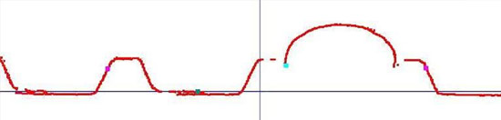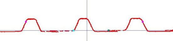 A traditional vision system may have trouble distinguishing dough from the pan and cannot determine how tall the dough ball might be. On the other hand a laser profile system can directly determine whether the dough ball is absent, correctly sized or oversized.